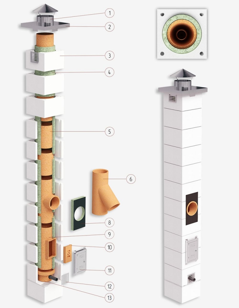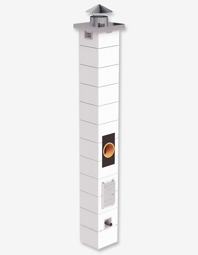 Дымоход одноходовой из керамики системы OFFEN AT O-BLOCK 1 состоит из комплектующих системы HART АТ +негорючая теплоизоляция + наружная оболочка из газобетона YTONG.