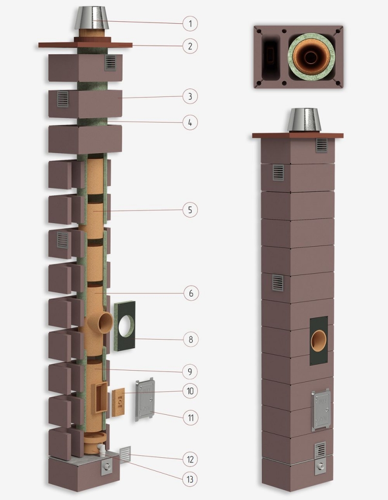 Диаметры керамического дымохода: 160, 180, 200 мм.