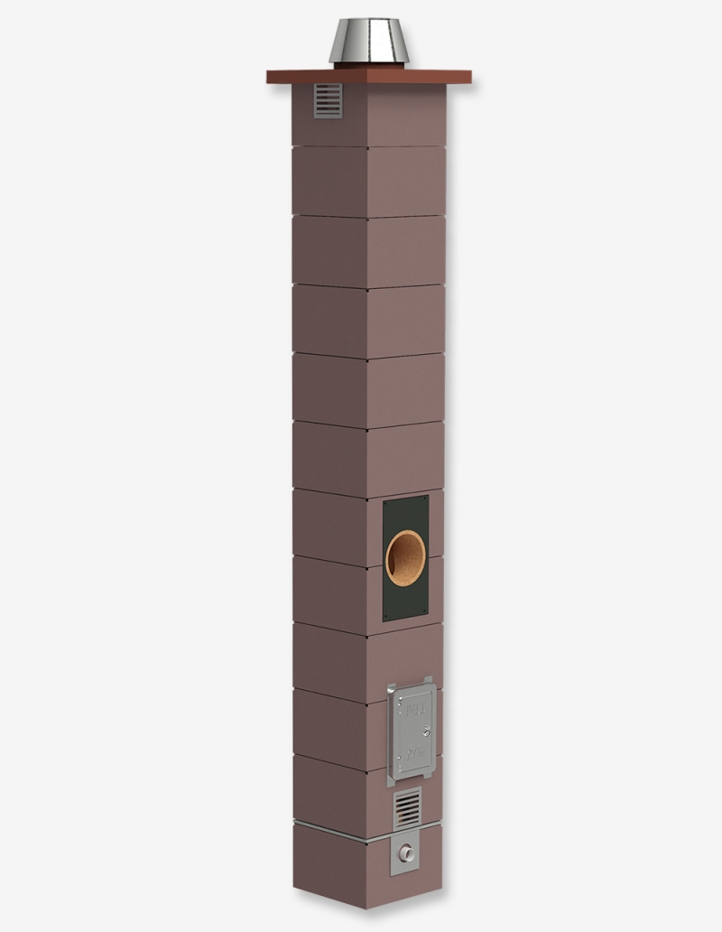 Дымоход одноходовой из керамики системы OFFEN AT S-BLOCK 1 состоит из комплектующих системы HART АТ +негорючая теплоизоляция + наружная оболочка из керамзитобетона.