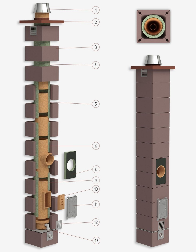 Диаметры керамического дымохода: 160, 180, 200 мм.