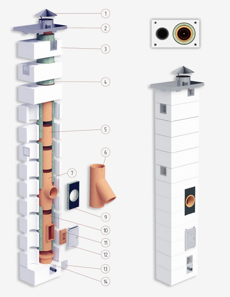 Диаметры керамического дымохода: 140, 160, 180, 200 мм.