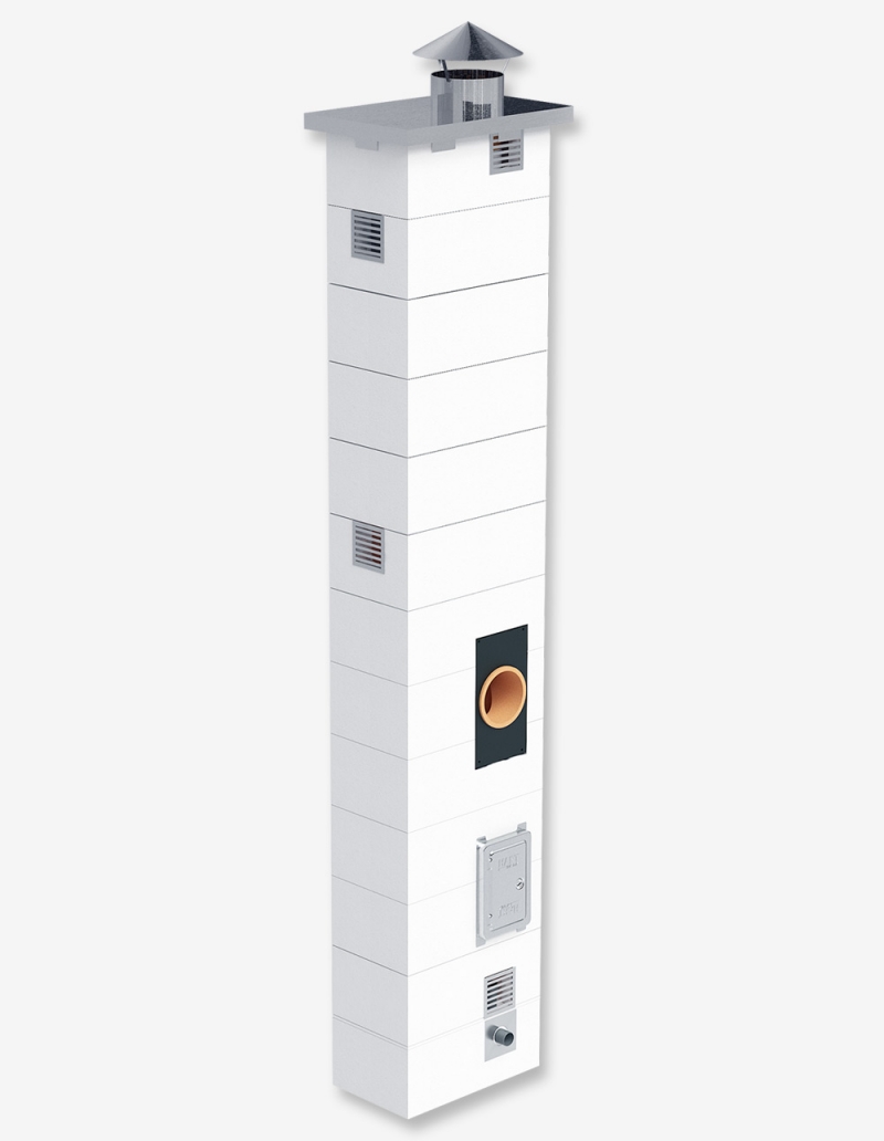 Дымоход одноходовой из керамики с вентиляцией системы OFFEN KLR О-BLOCK 1+V предназначен для удаления продуктов горения, как правило от одного источника тепла. Состоит из керамических элементов Дымохода системы HART KLASSIK KLR + негорючая теплоизоляция + наружная оболочка из газобетона YTONG с вентиляционным каналом.