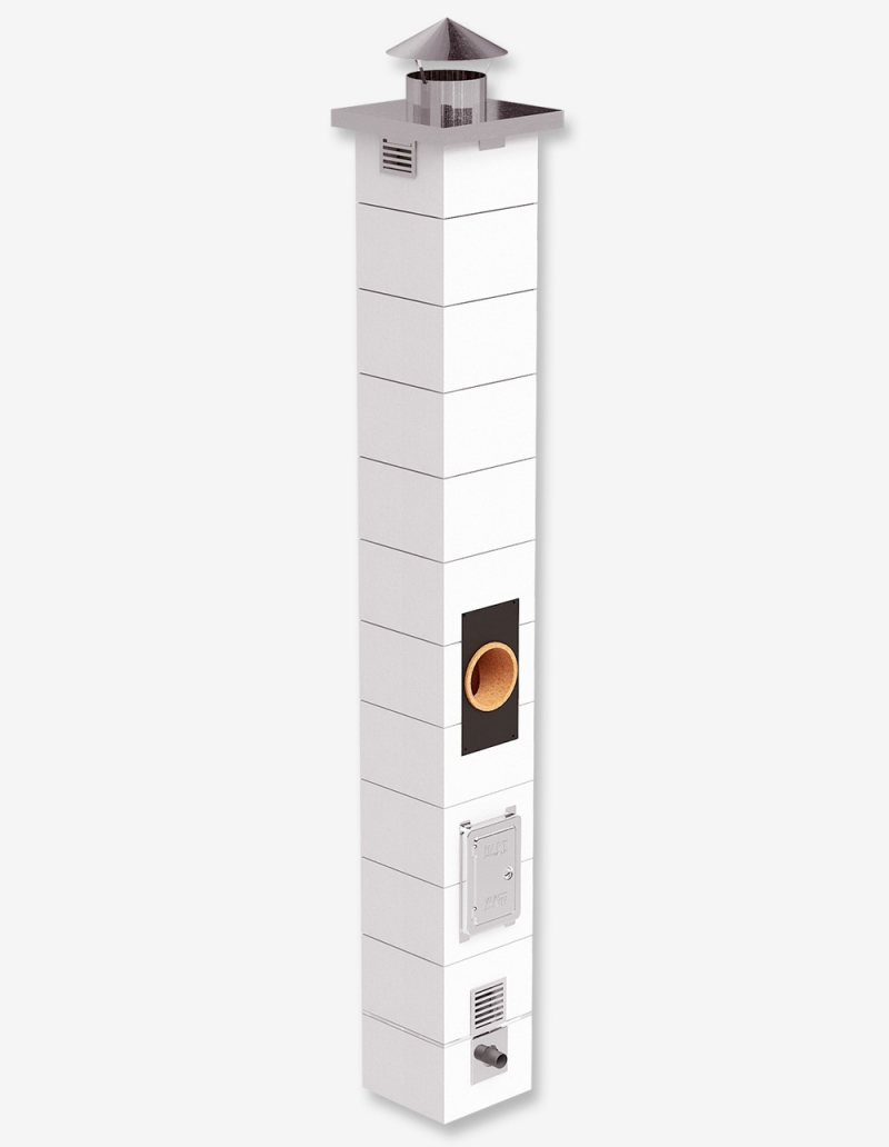 Дымоход одноходовой из керамики системы OFFEN KLR О-BLOCK 1 состоит из комплектующих системы HART KLASSIK KLR + негорючая теплоизоляция + наружная оболочка из газобетона YTONG.