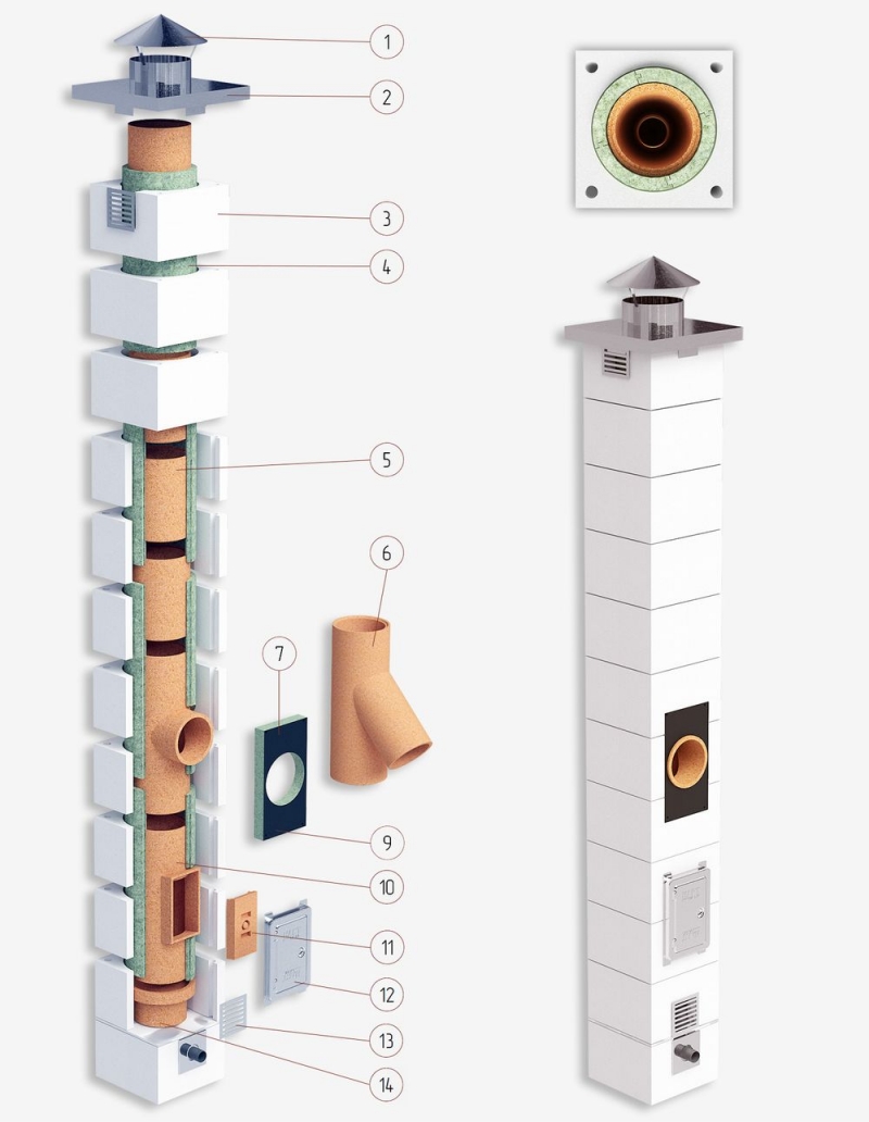 Диаметры керамического дымохода: 140, 160, 180, 200, 250 мм.