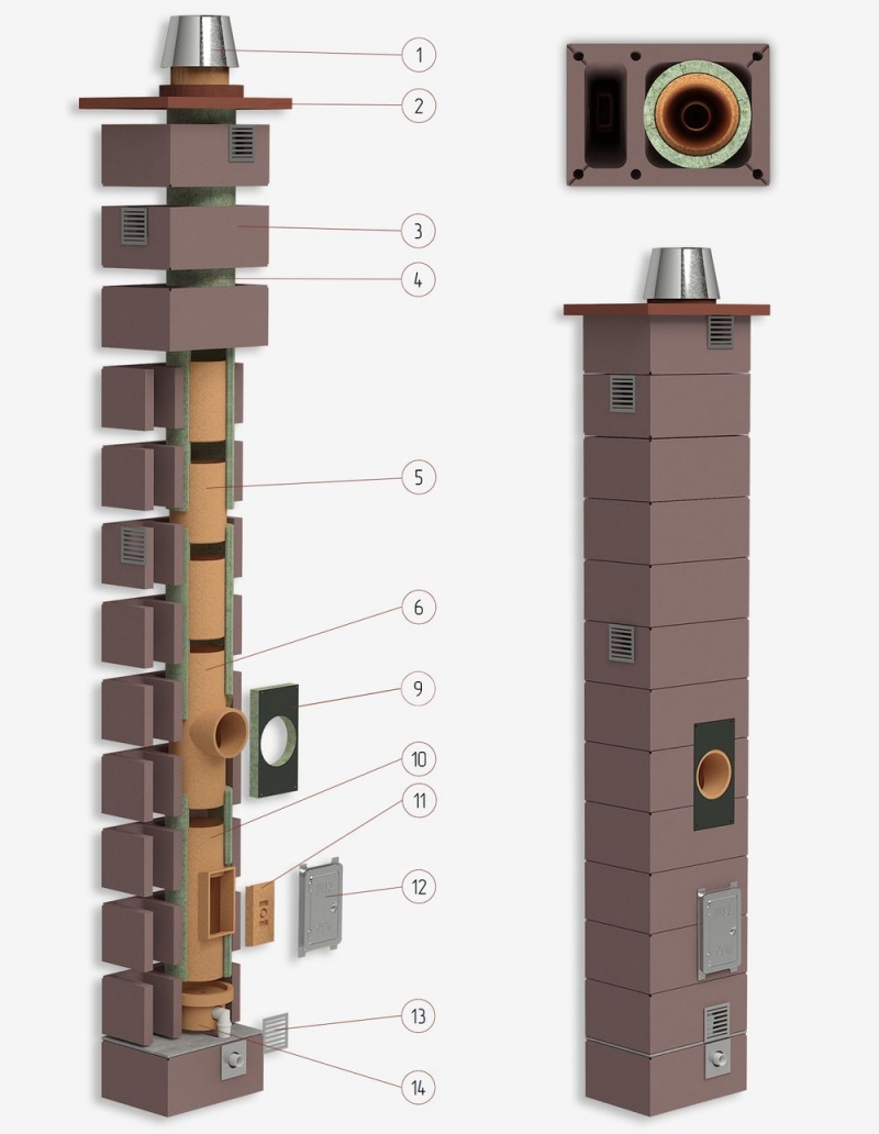 Диаметры керамического дымохода: 140, 160, 180, 200 мм.