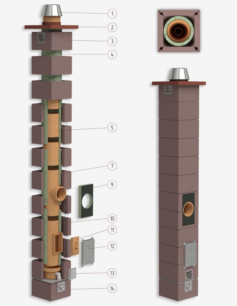 Диаметры керамического дымохода: 140, 160, 180, 200, 250, 300 мм.