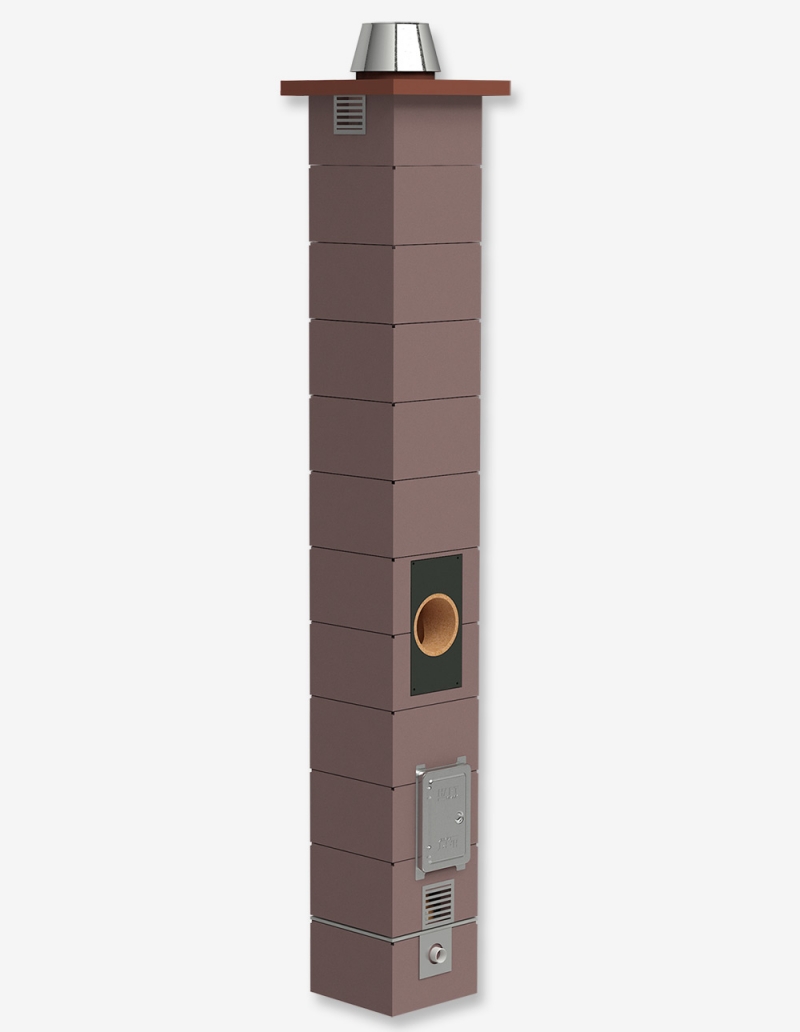 Дымоход одноходовой из керамики системы OFFEN KLR S-BLOCK 1 состоит из комплектующих системы HART KLASSIK KLR + негорючая теплоизоляция + наружная оболочка из керамзитобетона.