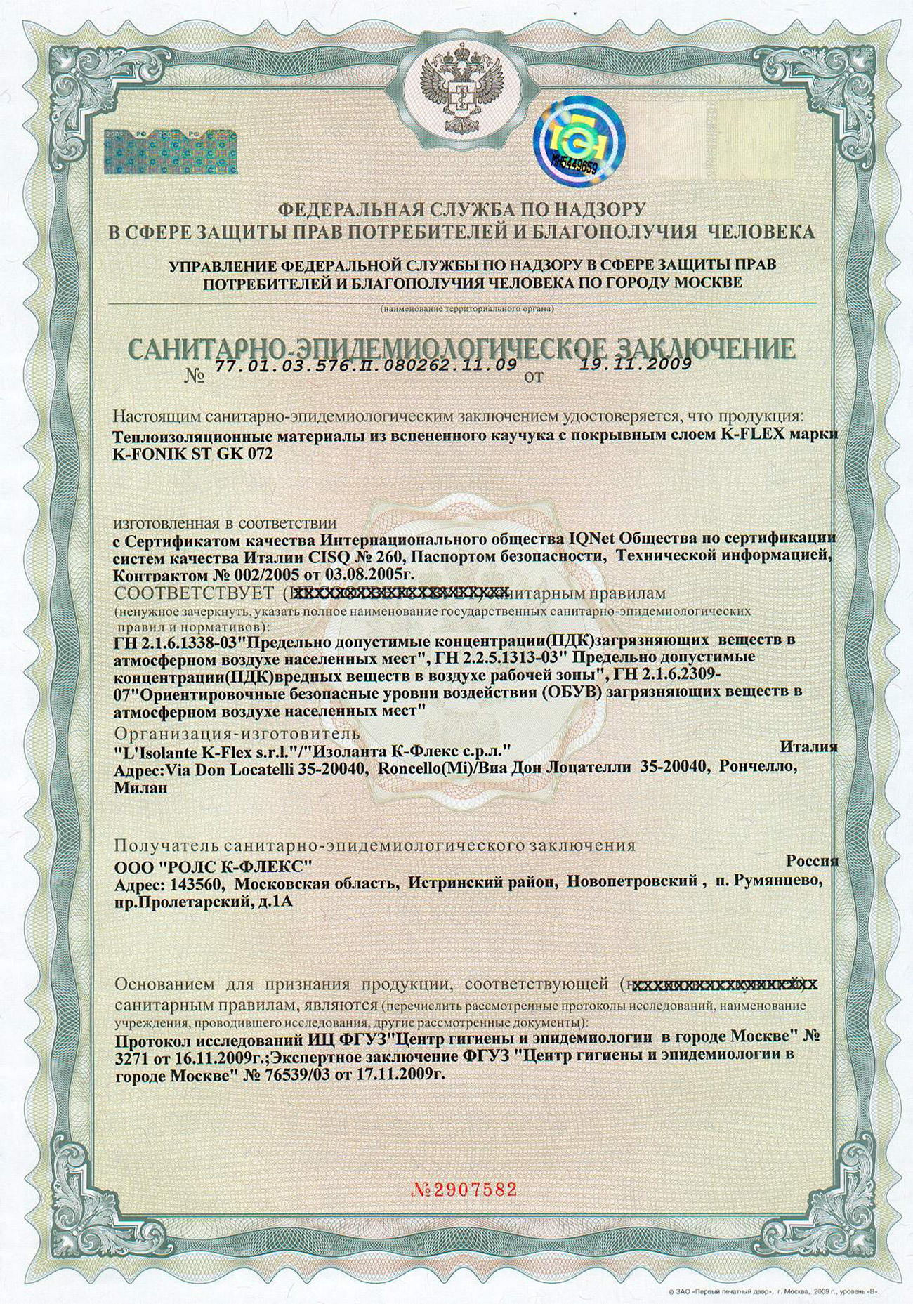 Санитарно-эпидемиологическое заключение K-Fonik ST GK 072