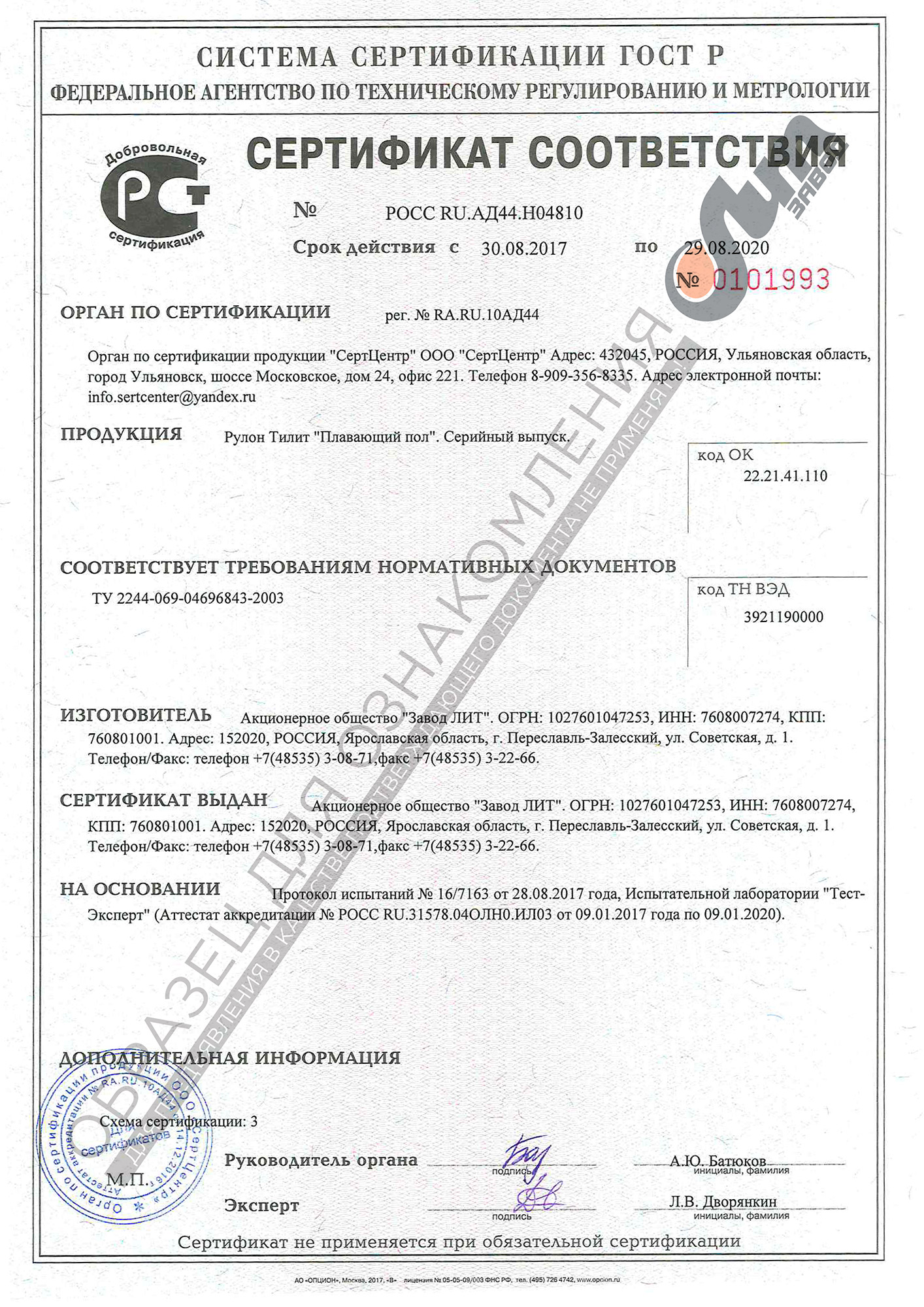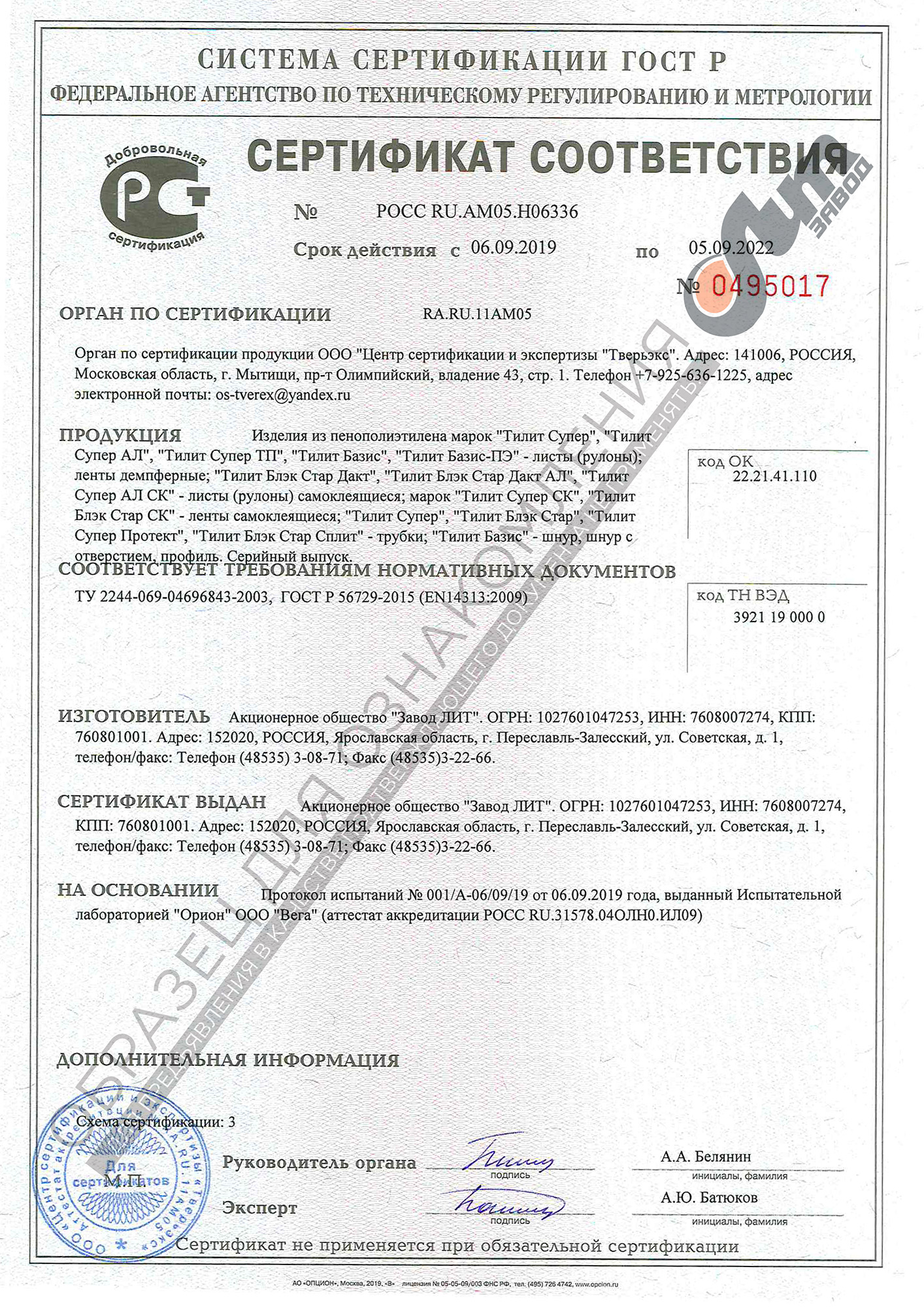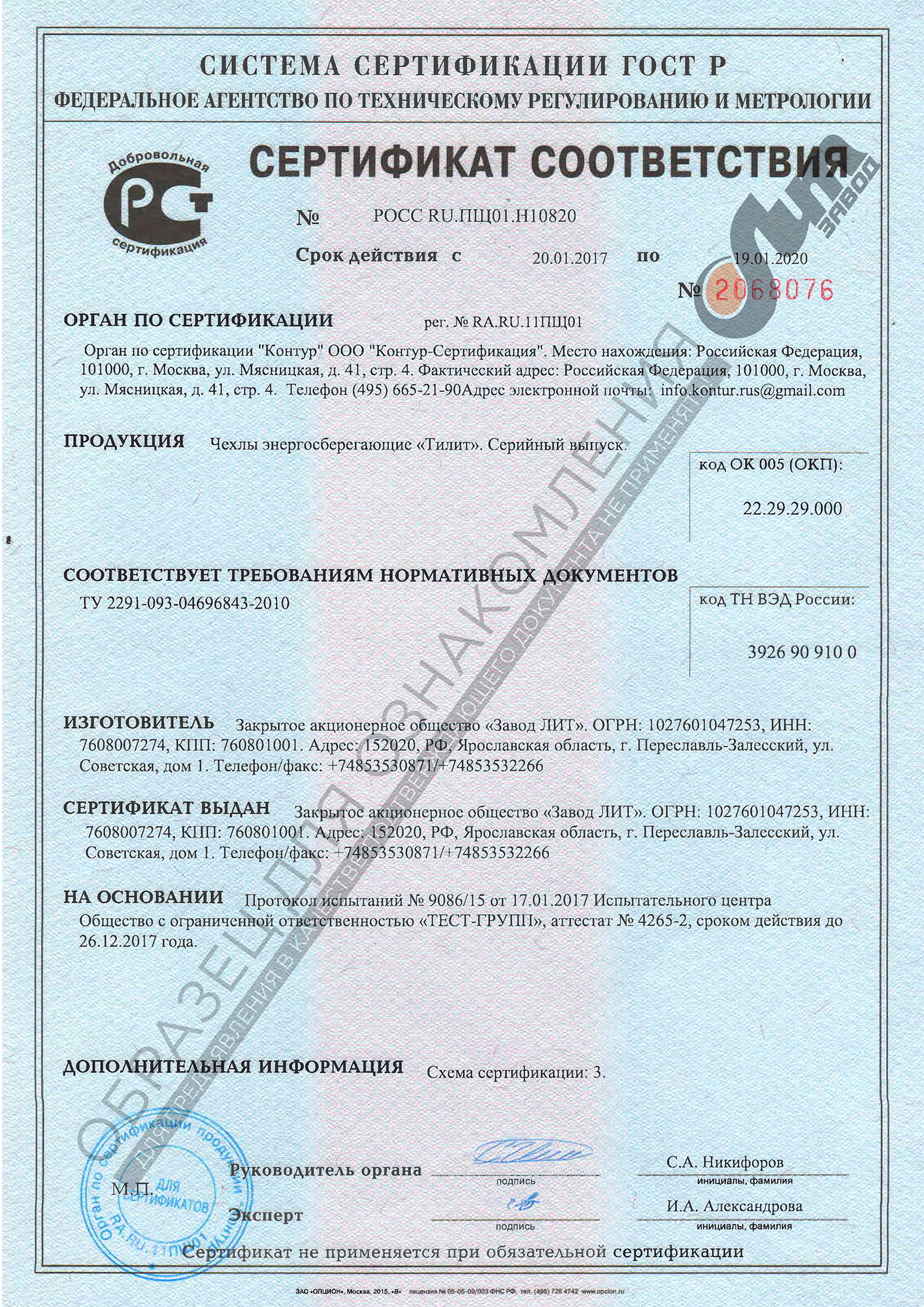 Сертификат соответствия на чехлы энергосберегающие Tilit