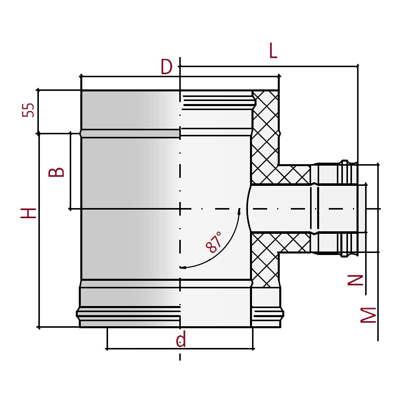 – для сэндвич тройников диаметром 200, 250, 300 отвод 80 мм формируется методом вытяжки