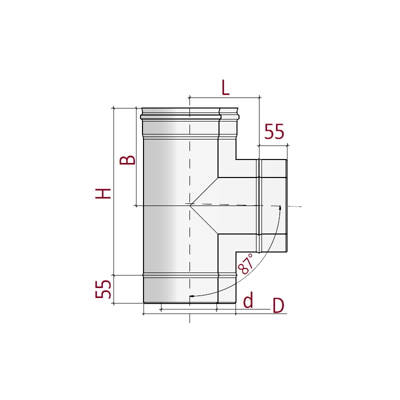 – для тройников с внутренним диаметром 60-250 отвод внутренней трубы формируется методом вытяжки.