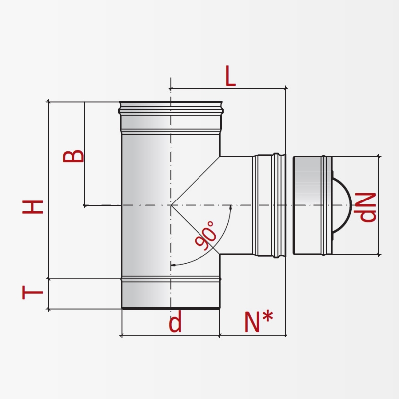 П - отвод (нос) тройника (dN) выполняется из стали толщиной 0,5 мм вне зависимости от толщины стали основной трубы (d)